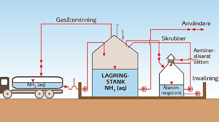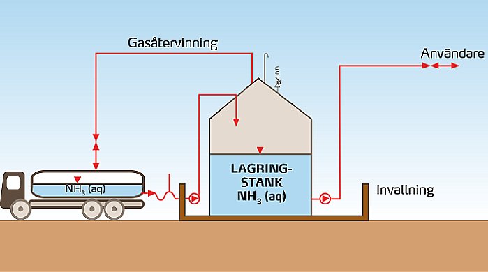 - Vattenfri ammoniak transporteras till din anläggning, men att riskerna med förvaringen minskar
