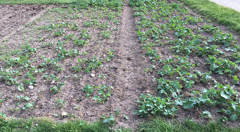 Nedanstående bild visar raps sådd 17 augusti på Borgeby i Skåne för nästa års Borgeby fältdagar.